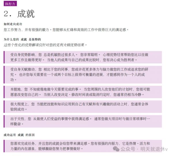 我之前测了一个盖洛普,排名第二的是成就,这个特质会让我很有行动力,做事也极度负责,和我合作过的每个客户都会觉得我靠谱,这个特质背面就是很容易逼死自己。