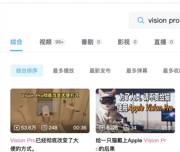 还有博主整了个非常抽象的活:他坐在马桶上,打开沉浸式环境,卫生间就瞬间变成了云雾笼罩的山峦之巅——你现在去 B 站搜 Vision Pro,第一条视频就是这个。