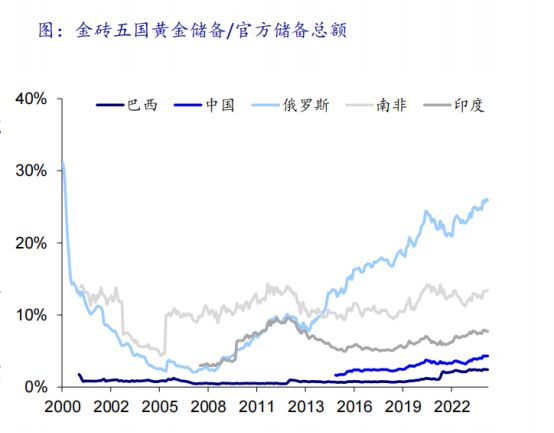 不仅是俄罗斯,金砖五国中南非、巴西、中国和印度,都从2015年开始持续增持黄金。