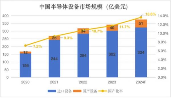 可以肯定地说,半导体设备是所有制造领域中最难进入的市场。前些年中国半导体设备要解决的还是有和无的难题,根本没有人去想有朝一日中国设备进入全球晶圆产线。得益于半导体产业对设备企业的支持,得益于国内晶圆厂扩产拉动国内半导体设备需求,2023年中国大陆半导体设备市场规模达到创纪录的342亿美元,增长8%,全球占比达到30.3%。芯谋研究预计,2024年中国大陆半导体设备市场规模将达到375亿美元,增长9.6%。