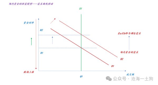在这个模型中,场内资金的需求包括两部分:1、卖出股票拿现金;2、卖a股票买b股票。场内资金的供给只有:拿现金买股票。