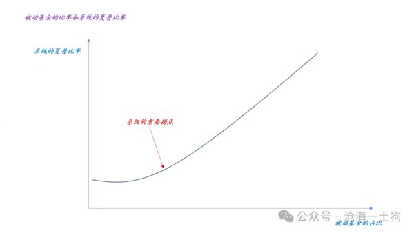 于是,就有了上图,当被动基金的占比逐步提升,系统的夏普比率会逐步提高。一旦提高到重要拐点,夏普比率超过“逃逸速度”,股票在大类资产的PK中胜出,系统的夏普比率会加速上升,对债券市场产生重大挤压。