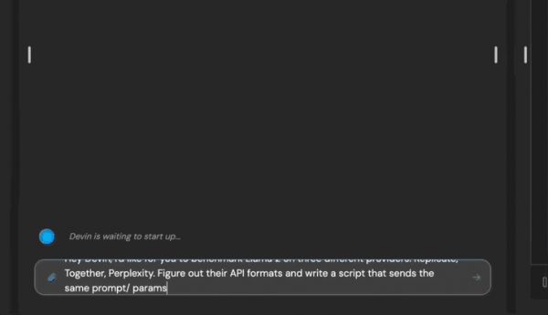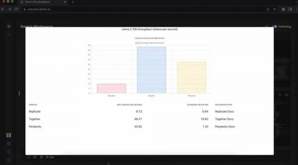 先从 Cognition AI 自己开始,他们想让 Devin 完成一个任务:测试大语言模型 Llama 在三个 API 提供商上的性能。
