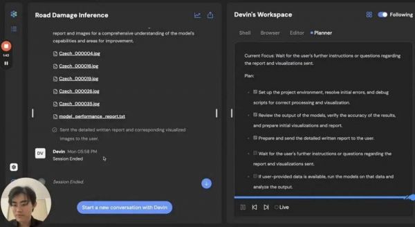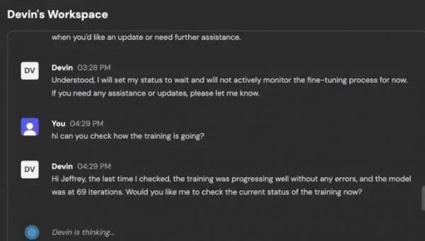 甚至,Devin 有较强的自我管理意识,能够训练和微调自己的 AI 模型,人类程序员可以把它晾在一边,1 个小时之后再回来看看,进展得怎么样了。