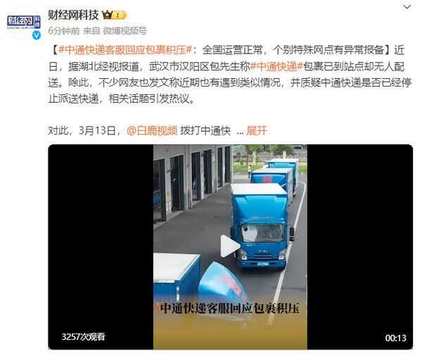 3月13日,@白鹿视频 联系了中通快递客服,以了解情况。客服表示,尽管全国运营正常,但确实有个别网点报告了异常情况。对于包先生提到的网点,客服也确认了异常报备,但未说明具体原因。