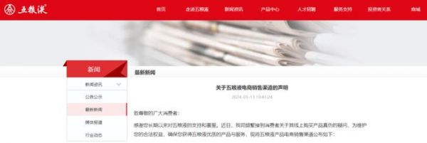 五粮液声明:未在拼多多开设官方旗舰店
