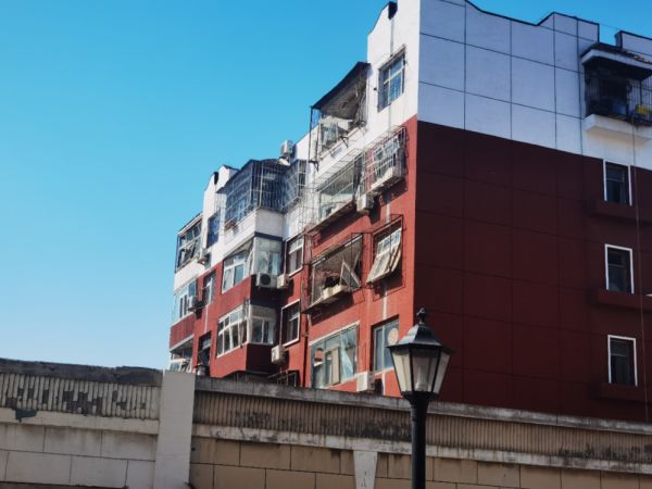 爆炸点附近的小区也遭受到较为严重的损坏,北欧小镇的几栋楼,南侧窗户几乎悉数被毁。有的窗框被震落到地下;有的铁丝网护栏严重扭曲,窗户挂在护栏上。