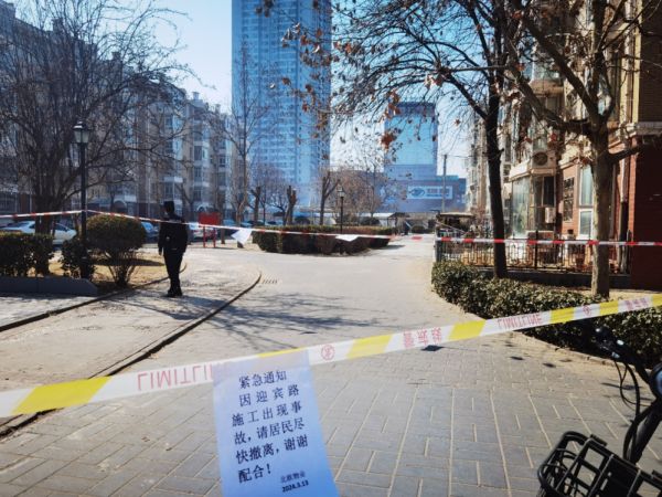 北欧小镇小区内拉起了警戒线 田国宝/摄