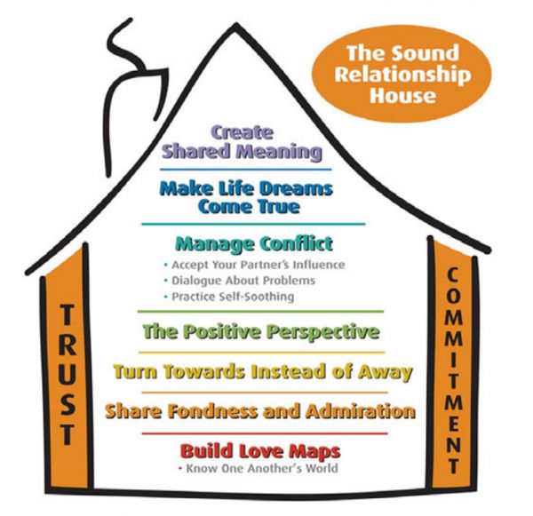约翰·戈特曼(John Gottman)和朱莉·戈特曼(Julie Gottman)夫妇是伴侣研究的专家。他们2017年合著的一篇论文中介绍了“稳固关系之屋理论”(The Sound Relationship House Theory),提到亲密关系应当有三个主要部分。