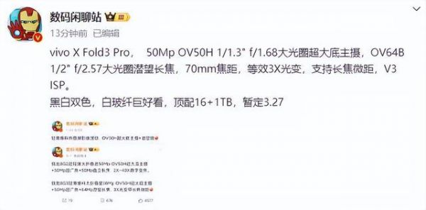 折叠屏也能卷影像?vivo X Fold3配置曝光,本月发布!