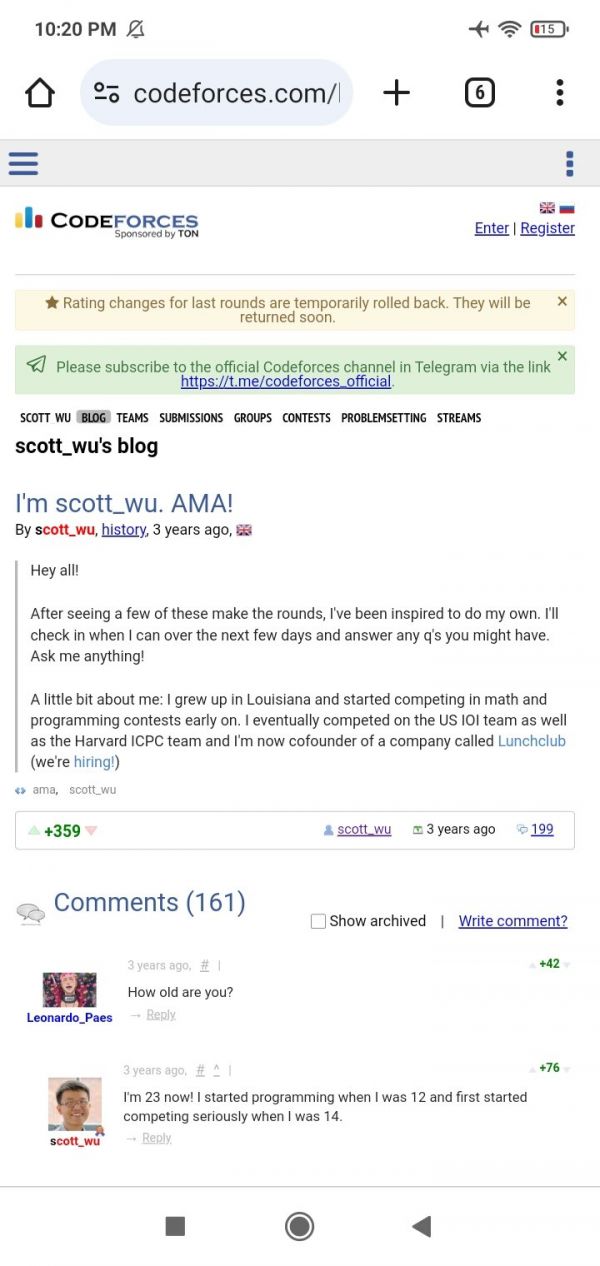 后来,在亲兄弟Neal Wu的影响下,Scott Wu逐渐迷恋上了竞争性编程。二人均成为了竞争性编程领域的传奇人物。兄弟俩从青少年时期就是国际编程比赛的“常胜”选手。