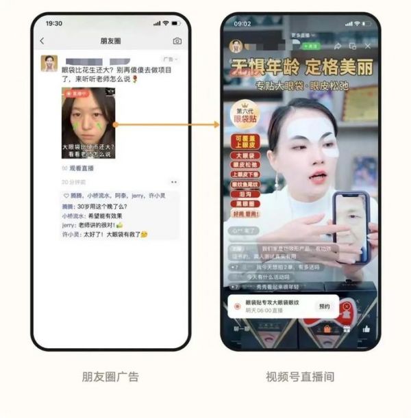 目前,视频号在加速开发公域流量。今年1月,微信广告称已支持在朋友圈推广视频号直播,用户点击主素材可跳转至视频号直播间。随着腾讯生态由私域升级为全域,商家可能也要更“内卷”了。