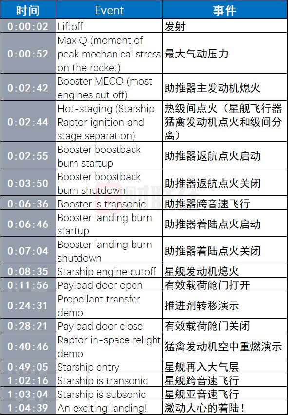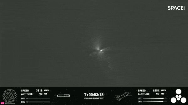 约11分钟后,超重助推器完成其使命,星舰开始进行舱门打开;发射约28分钟后,舱门完成关闭,星舰完成舱门开关测试;发射47分钟后,星舰执行二次点火演示,猛禽发动机点火顺利成功;不过,在SpaceX在星舰重返大气层过程中失去了星舰,任务提前结束。虽然最后没有看到星舰着陆的画面,但这一次星舰试飞取得又一里程碑式的突破。