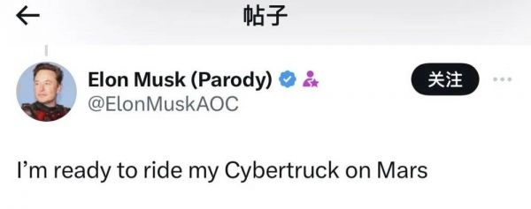 一位名为马斯克(Parody)的网友都忍不住替他发表获奖感言:“我已经在火星驾驶我的Cybertruck!”