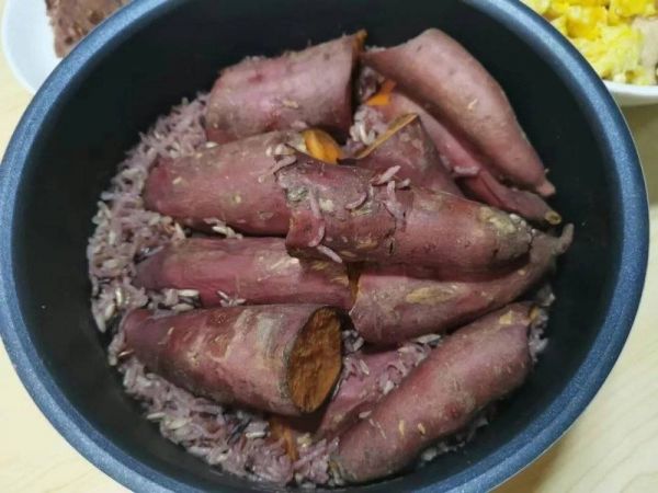红薯和红米糙米饭一起蒸,几十年前可能是穷人的食物,如今却成为健康食物。图源:食通社