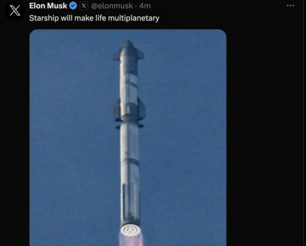 在此次任务结束时,马斯克在社交平台X上发文说:星舰将会让人类成为多行星物种。