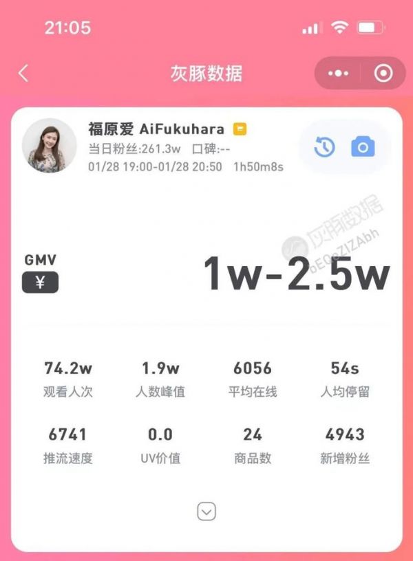 今年一月,知名乒乓球运动员福原爱开启直播直播首秀,在场观人次超过140万的情况下,最终带货数量2375件,总GMV仅为2.3万元,客单价甚至不到10元。