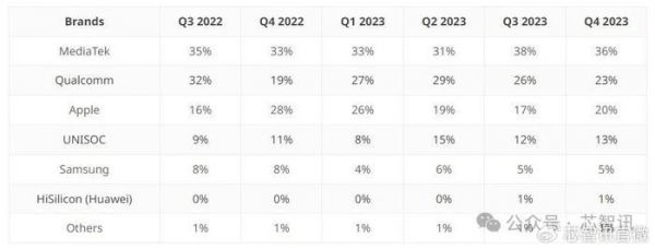 2023Q4全球智能手机AP市场:联发科第一,华为以1%份额居第六!