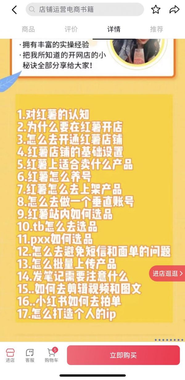 澎湃新闻通过相关平台搜索发现,在同一平台,上述主播关联账号超过5个,其中一个账号的粉丝量为32.8万。通过观察其直播发现,每次直播的话术基本一致,在介绍自己开店成功的同时售卖199元的开店课程。课程内容包括“红薯站内如何选品”、“tb怎么去选品”、“pxx如何选品”、“怎么去避免短信和面单的问题”等内容,每一项课程的时长在3至5分钟左右。