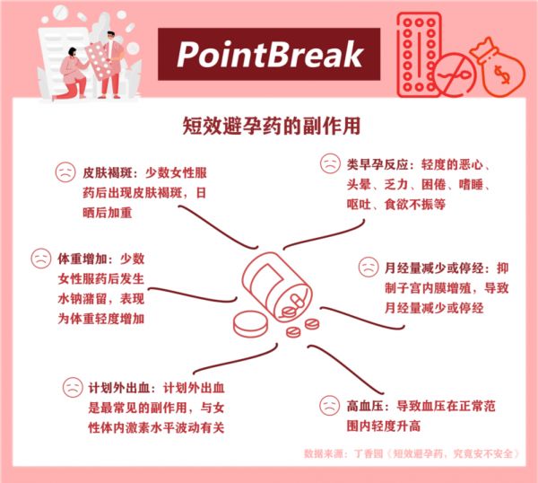 同样为女性带来担忧的,是避孕药可能产生的副作用。副作用产生的情况因人而异,有人服药后不会有任何不良反应,也有人因药物中的雌性激素而出现增重、恶心甚至抑郁的症状。悦悦初次服用妈富隆时出现头疼、呕吐的症状,体重也快速增加,“大概一天就能长一斤”。她询问医生得知妈富隆是比较“老”的药,根据医生建议改服添加了新型合成孕激素屈螺酮的新药优思明。这种新型孕激素具有抗盐皮质激素的作用,能防止发胖、水肿等症状。换药后,悦悦的身体便再也没有出现不良反应。