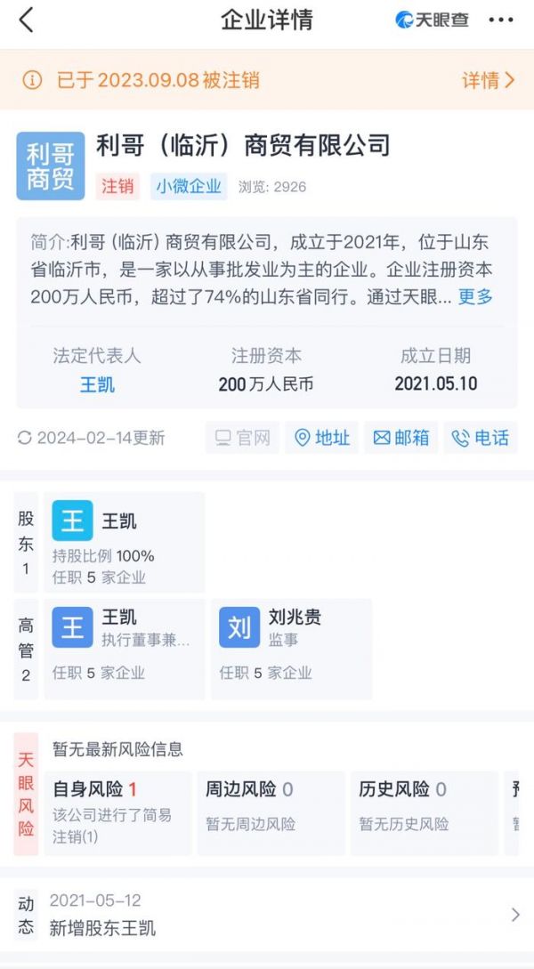 去年曝光后,当地市场监管部门、公安系统以及网信公司第一时间到达公司现场调查处理,并约谈该公司相关负责人,后续该公司于2023年12月20日注销。