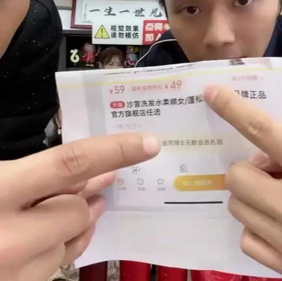 比如此前“疯狂小杨哥”直播间的主播在销售一款洗发水时,给消费者出示了某电商平台销售的同款商品的页面截图为49元,但这张图的上半部分被折向后方。