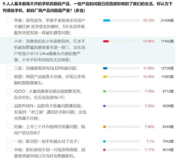 315调查丨用户最在意的数码问题:苹果、小米、三星位列前三