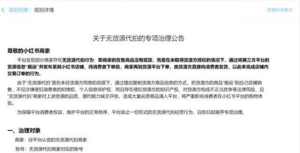 同是在去年,小红书商家课堂也发布了一则“无货源代拍专项治理公告”,禁止一切形式的无货源代拍经营行为。