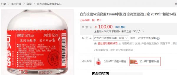 记者调查发现,听花酒的生产单位听花酒业其前身就是凉露酒业,生产白酒为凉露。目前京东商城显示:2019年的52~125毫升凉露白酒,24瓶售价为100元,合计一瓶单价不到5元。