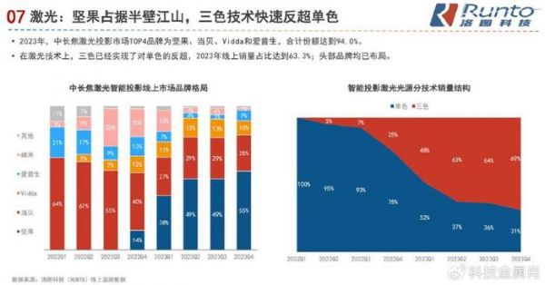 正是拥有了这种天然属性,三色激光可以给用户带来更好地观影体验,让用户在观影的时候沉浸感更强。在这份报告中,我们也能看到整个投影仪市场发生的变化。各大品牌都在布局三色激光投影,除了坚果投影、海信等激光领域的先行者之外,极米也在今年也一口气发布了3款三色激光投影,正式进入了三色激光领域。此外,还有当贝、光峰等品牌,也陆续推出了三色激光光源的投影仪。这一切,都是因为市场的需求。