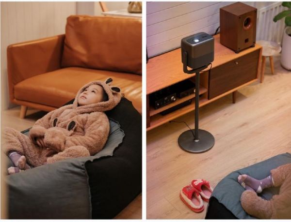 除了技术上的创新,坚果在投影形态上也做出了很大改变。它首创了云台设计,将云台理念设计到了投影产品上,从而解决了传统投影仪使用时角度难调节、移动后投射不方便等诟病,从而让观影变得更加自由。