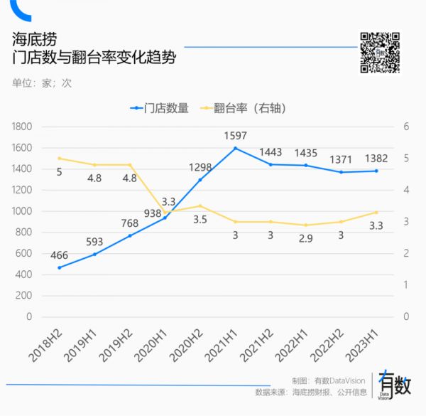 自2012年开启连锁扩张以来,海底捞的直营门店数量翻了20倍,单店营收一度超过4000万,连带着市值突破4500亿大关。