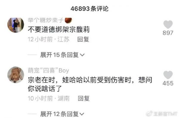 这也为何一个点赞最高的评论是:“人家宗馥莉没干啥,都是网友自发的,不要道德绑架,不要把问题转移到宗馥莉身上。”