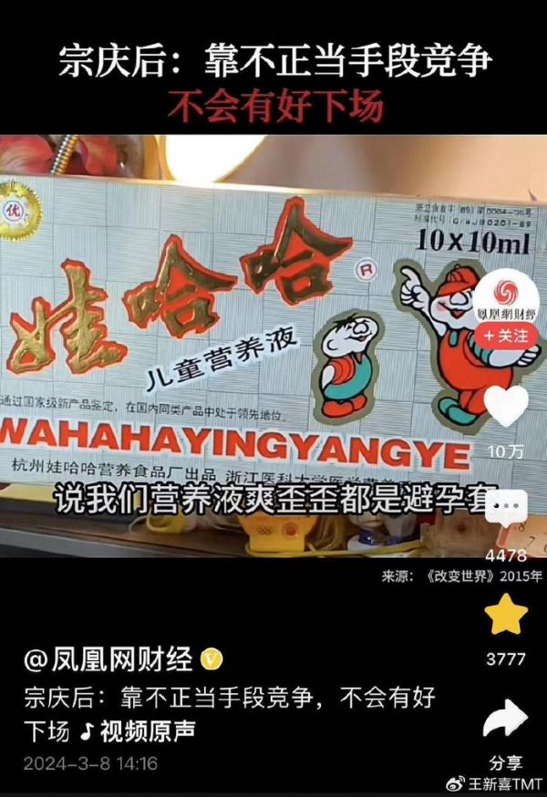 按照李国庆的说法,让宗馥莉格局大点,给农夫山泉说几句公道话,那么正如网友所说,当年娃哈哈纯净水、营养快线被各种恶意谣言攻击,宗亲后曾经接受采访说,过去很多针对娃哈哈的谣言,比如说营养液爽歪歪都是避孕套等类似谣言,这个时候,李国庆又哪去了呢。