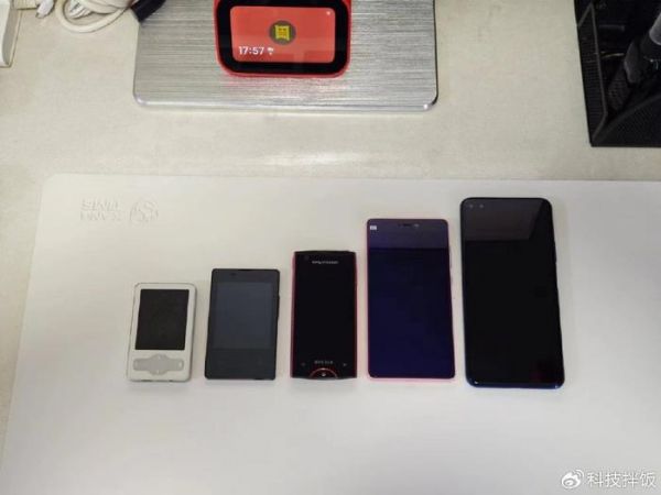 它就是日本京瓷的KY-01L,一款卡片式的墨水屏手机。何为“卡片式”?那就是体积跟银行卡一般大。如果你还没有概念,我就不卖关子了,上图左二就是京瓷KY-01L,只比魅族M6这部MP3大一点,远小于常规的安卓手机。