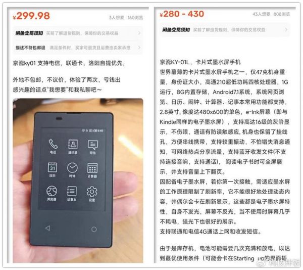 经过我再三确认,目前京瓷KY-01L的货源集中在商家手上,屏幕略微老化卖280,完美屏卖350,完美屏幕+完美成色卖430,个人建议买280的玩玩就行。而个人玩家的卖帖既高价又少见,上图299元的被我拍了,也就是本文这台, 我想亲手确定能用电信4G卡。整体来说,这机器卖点鲜明,单纯用来看书真的好轻巧,塞兜里掉了都不知道(笑~)。