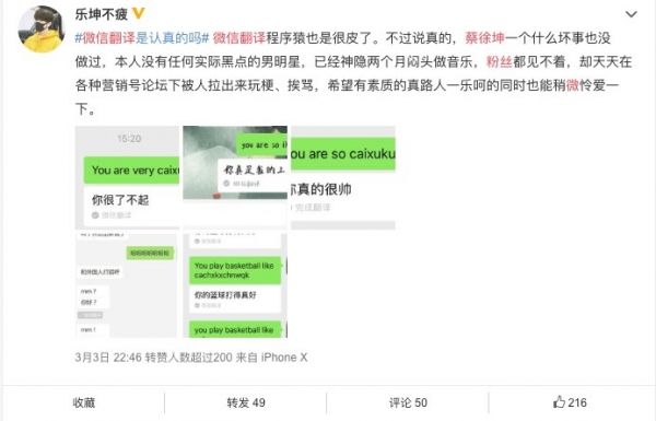“你打篮球像蔡徐坤”:微信翻译这个bug是怎么回事?