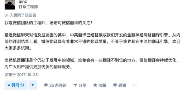 一方面,微信翻译背后的技术确实比较复杂。解释它,有助于用户去理解它的工作原理,明白这个翻译结果的背后,可能有着十分复杂的技术原因。