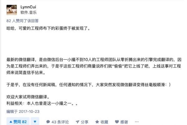 在一个9亿用户量级的全民级 app 里,开发任何功能都应该经过仔细的论证,上线前也应该有严格的测试,尽量确保万无一失。然而,微信的前工程师曾透露,至少在微信翻译上线时候并非如此。