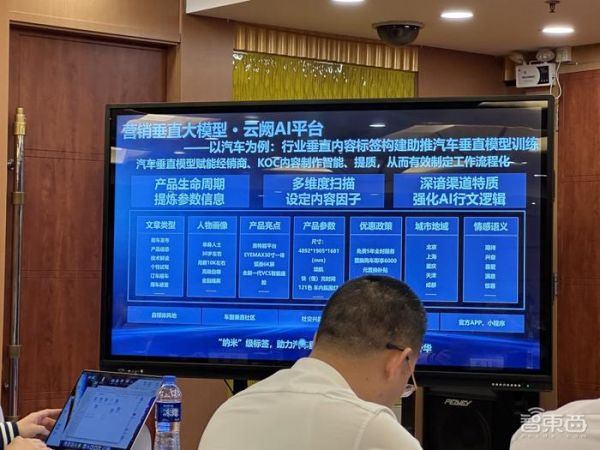 郑浩谈道,大模型进入场景,需要有效率工具等与企业的业务紧密结合,如果依靠通用大模型的对话框,在很多业务实践上会遇到困难,因此需要场景类工具做进一步补充。以汽车行业为例,云阙AI平台就需要引入文章类型、人物画像、产品亮点、产品参数、优惠政策等要点。