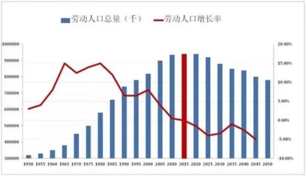 劳动人口总量及增长率变化图