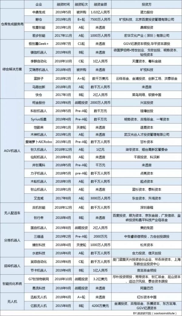 单就物流机器人领域而言,据不完全统计,2018年以来就有三十几起的大额融资事件。