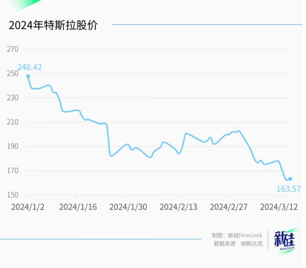 而在今年开年至今的三个多月时间里,特斯拉股价下跌了34%,核心矛盾却又是“不如中国车企强”以及“纯电车正在被欧美抛弃”。