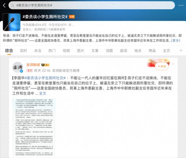 “厕所社交”的出现源于学校和家长的顾虑