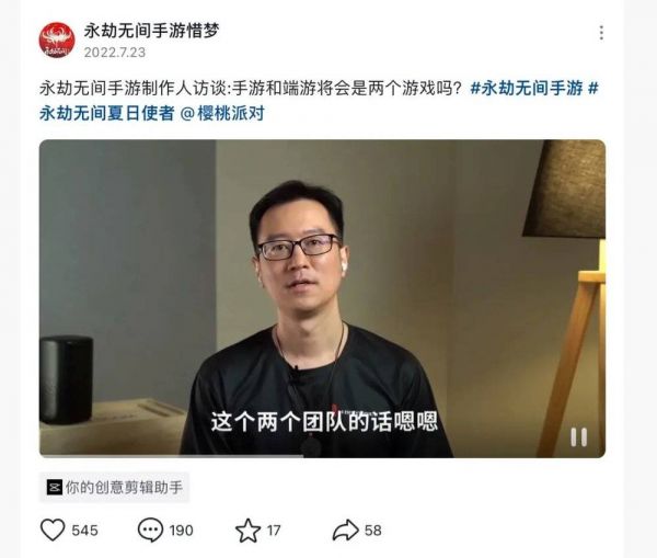 抖音上KOL对游戏制作人的访谈