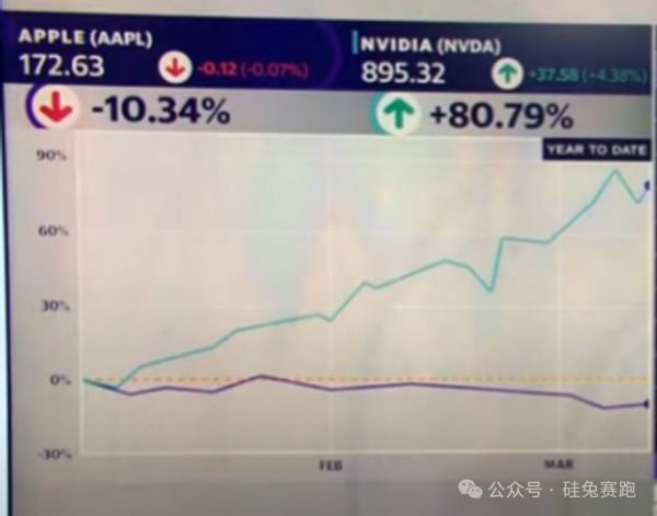 尽管在十几年前,苹果就开始布局AI。不过眼下AI时代全面到来之时,苹果却严重掉队,英伟达faner 成为这个时代的“硬通货”。表现在资本市场上,2024年以来,苹果市值已跌去了3000亿美元。与此同时,英伟达股价高歌猛进,市值直逼3万亿美元。