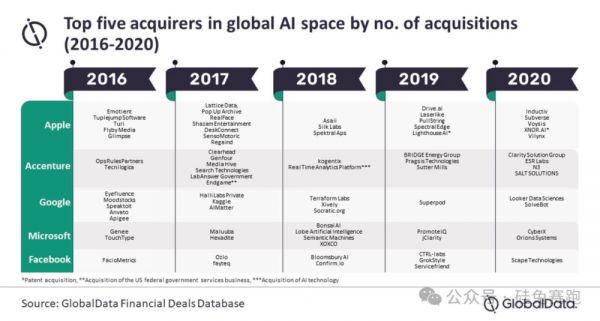 2016~2020年苹果AI收购vs谷歌、微软、Meta数据来源:GlobalData
