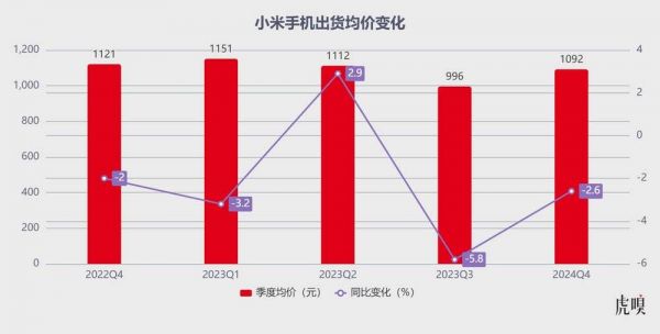 另外值得注意的一点是,小米的手机业务整体来看出货均价并没有增长,反而较去年同期下降了2.6%。