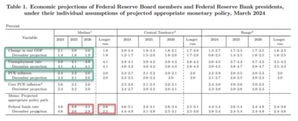 本次货币政策决议声明、经济展望和利率预期点阵图公布后,有“新美联储通讯社”之称的记者Nick Timiraos发文称,尽管近几个月经济增长稳健、通胀增长强于预期,美联储官员仍未大幅修改他们对今年晚些时候降息的预期,预计通胀会重回放缓势头,他们的降息前景不变。