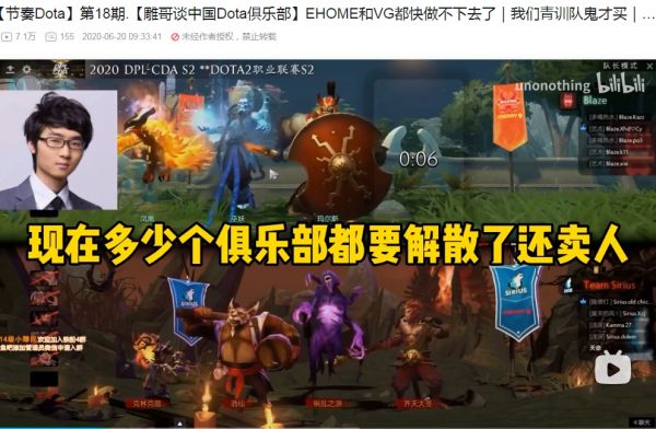 前职业选手、刀塔主播Zhou曾与多名刀塔主播自发投资青训队,后续表示难以维持